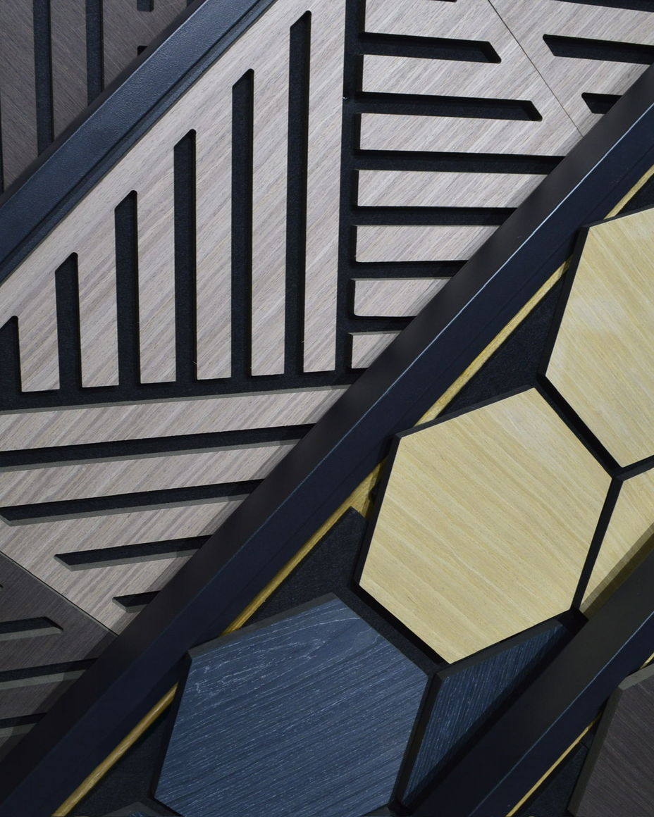 The design of your walls influences the atmosphere of the entire space — from the mood it sets to the character it reflects. With HexWall acoustic panels, you have everything you need to create a space that’s as refined as it is expressive. Precision-crafted wood veneer meets a modern geometric form, allowing you to build bold accent walls or calming, sound-dampened environments. The soft felt backing enhances acoustics while offering effortless installation. Every panel is backed with eco-conscious materials and finished to highlight the natural beauty of real wood grain.